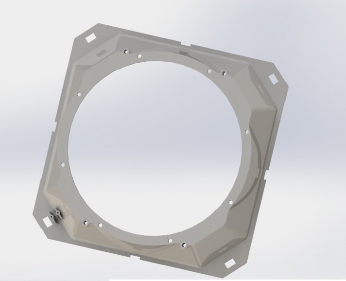 Injetado em termoplástico auto - extinguível atendendo a norma UL94-V0 Resistente ao calor entre -35ºC até + 85ºC Acabamento na cor cinza RAL 7032 Ideal para montagem, nas venezianas 34325 , 34326 , 34327 , 50200 e 52200 Montagem na veneziana através de click. Montagem do ventilador através de parafusos